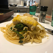 Loved that café, sitting with you chatting. It is a moment of happiness that will stay with me in years to come. I don't know why certain moments stick - my love for you is always the same. But certain times it's more pronounced and that was one such time. I think it has to do with being deeply inspired and affected not only by who you are with but the area and ambience around you. Hard to explain. That night, you cooked for us a beautiful piece of cod loin with noodles and your signature roasted broccolini in anchovies:P